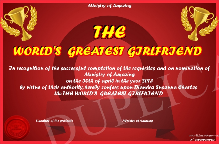 Certificate-degree can have your THE WORLD'S GREATEST GIRLFRIEND