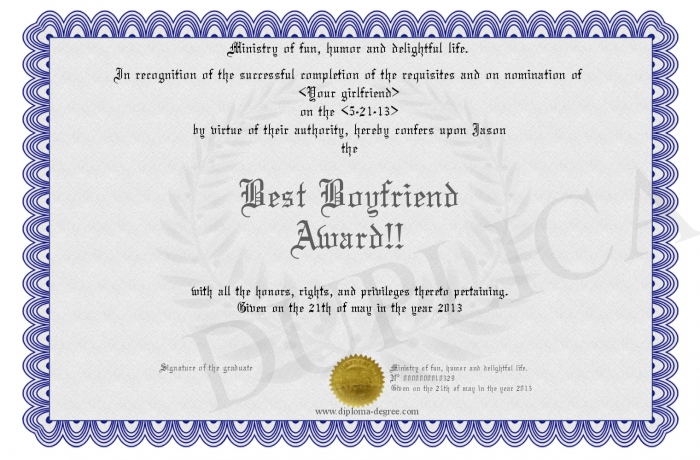 Certificate-degree can have your Best Boyfriend Award!!