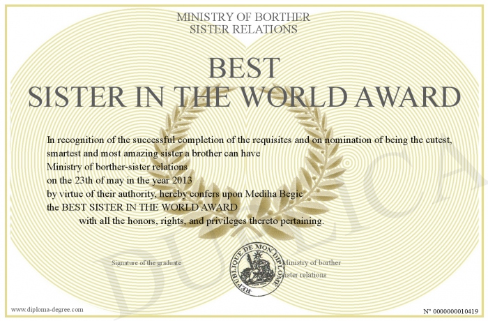 Certificate-degree can have your BEST SISTER IN THE WORLD AWARD