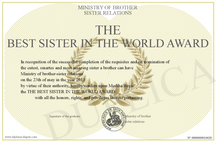 Certificate-degree can have your THE BEST SISTER IN THE WORLD AWARD