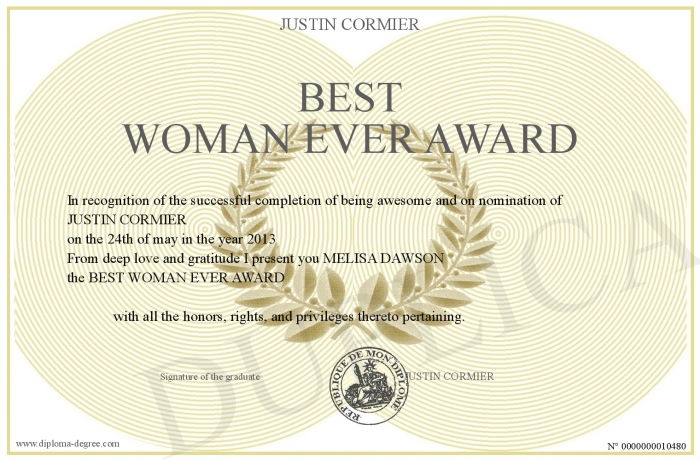 Certificate-degree can have your BEST WOMAN EVER AWARD