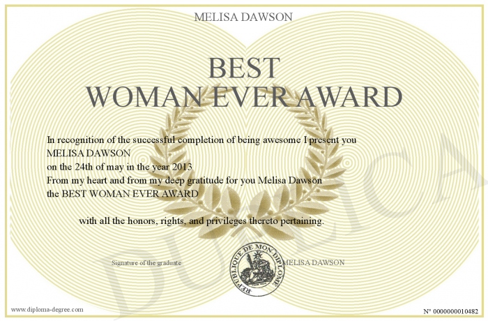 Certificate-degree can have your BEST WOMAN EVER AWARD