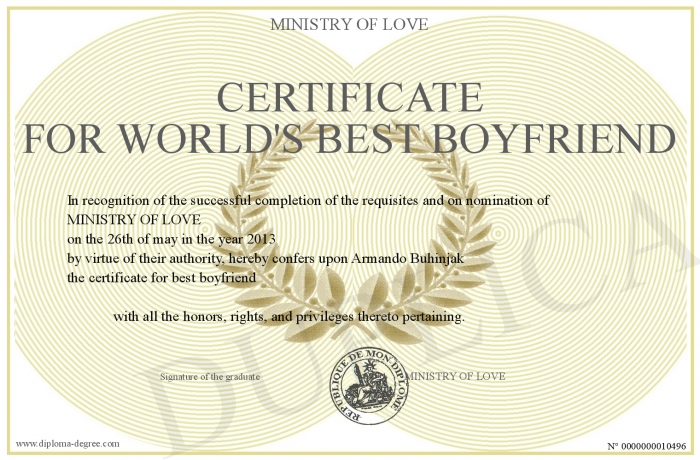 Certificate-degree can have your certificate for WORLD'S BEST BOYFRIEND