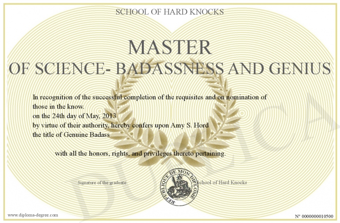 Certificate-degree can have your Master of Science- Badassness and Genius