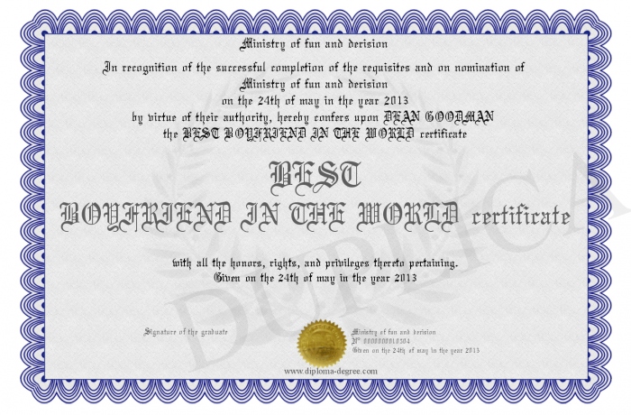 Certificate-degree can have your BEST BOYFRIEND IN THE WORLD certificate