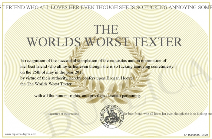 Certificate-degree can have your The Worlds Worst Texter
