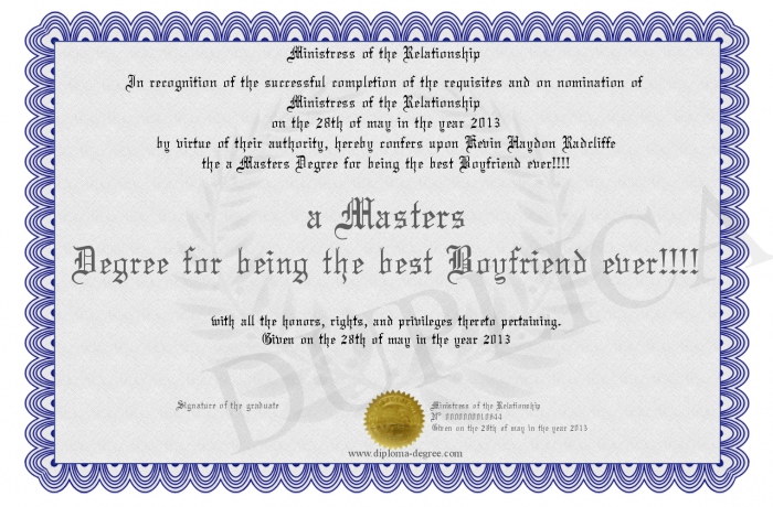 Certificate-degree can have your a Masters Degree for being the best Boyfriend ever!!!!
