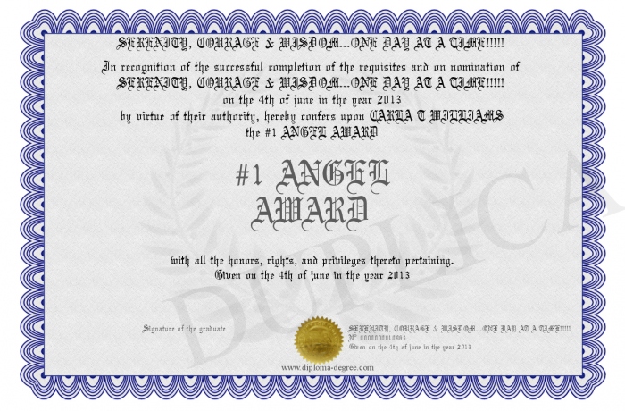 delivered to his owner by SERENITY, COURAGE & WISDOM...ONE DAY AT A TIME!!!!! !