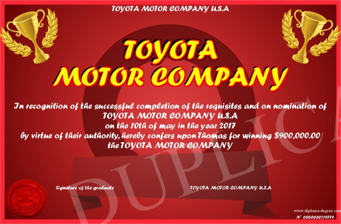 Certificate-degree can have your TOYOTA MOTOR COMPANY