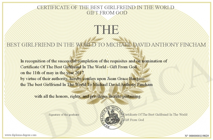 Certificate-degree can have your The best Girlfriend In The World To Michael David Anthony Fincham