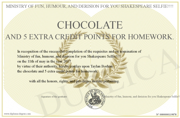 Certificate-degree can have your chocolate and 5 extra credit points for homework.
