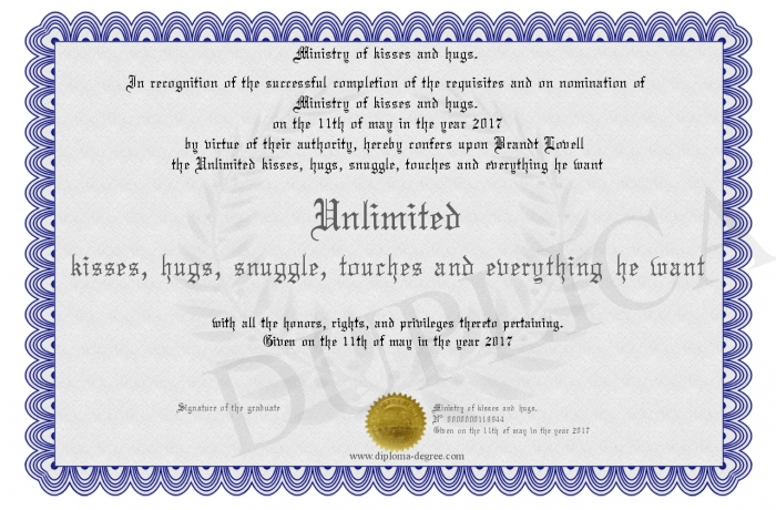 Certificate-degree can have your Unlimited kisses, hugs, snuggle, touches and everything he want