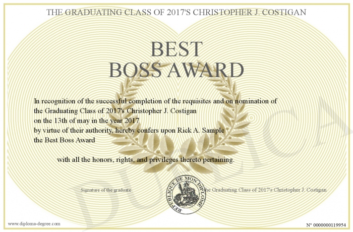 Certificate-degree can have your Best Boss Award