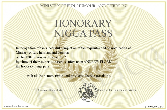 Certificate-degree can have your honorary nigga pass