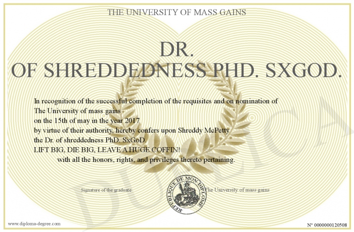 Certificate-degree can have your Dr. of shreddedness PhD. SxGoD.