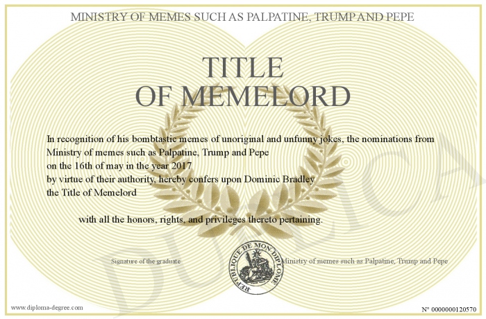 Certificate-degree can have your Title of Memelord