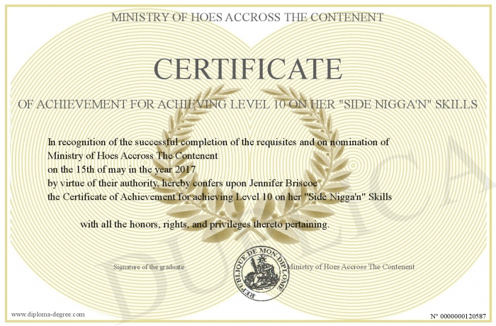 Certificate-degree can have your Certificate of Achievement for achieving Level 10 on her -Side Nigga'n- Skills