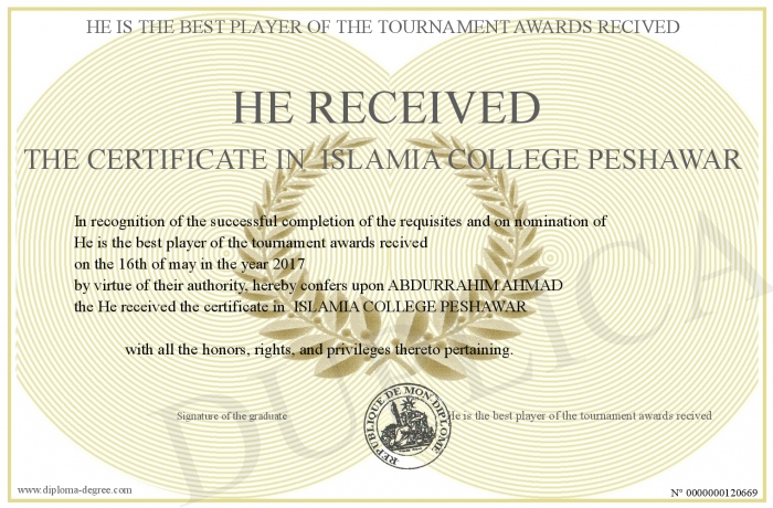 Certificate-degree can have your He received the certificate in ISLAMIA COLLEGE PESHAWAR