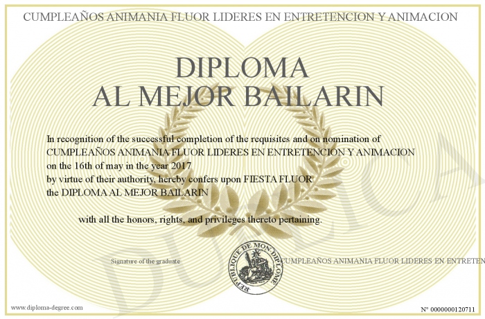 Certificate-degree can have your DIPLOMA AL MEJOR BAILARIN