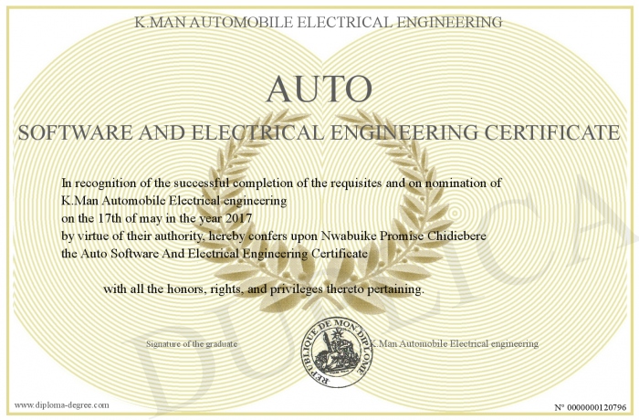 Certificate-degree can have your Auto Software And Electrical Engineering Certificate
