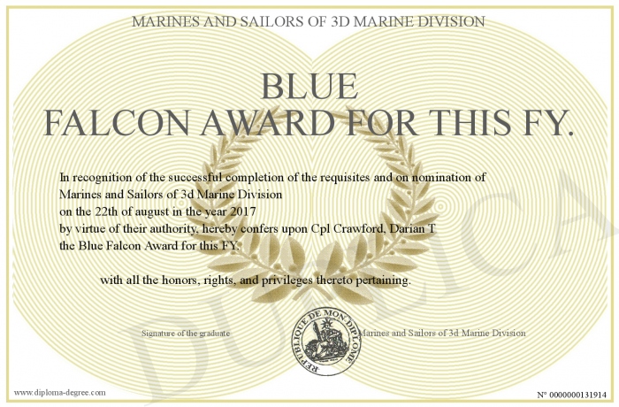 Certificate-degree can have your Blue Falcon Award for this FY.