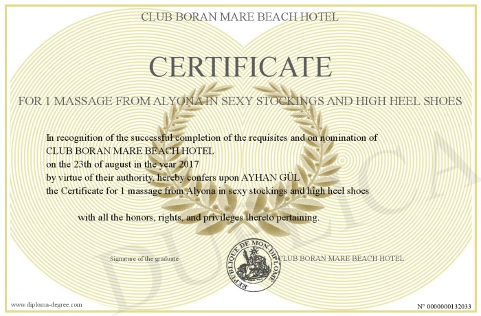 Certificate-degree can have your Certificate for 1 massage from Alyona in sexy stockings and high heel shoes