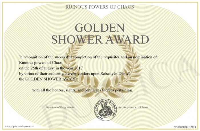 Certificate-degree can have your GOLDEN SHOWER AWARD