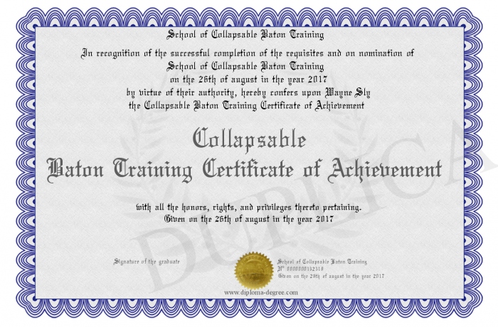 Certificate-degree can have your Collapsable Baton Training Certificate of Achievement