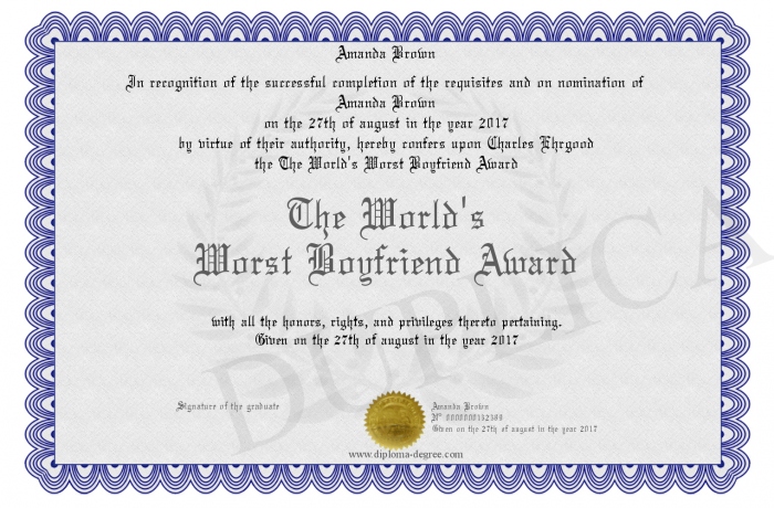 Certificate-degree can have your The World's Worst Boyfriend Award