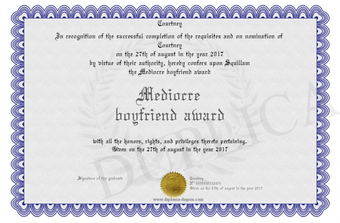Certificate-degree can have your Mediocre boyfriend award