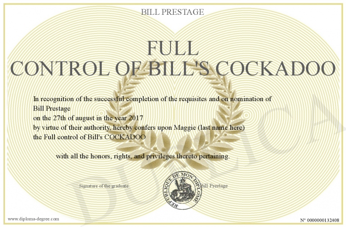Certificate-degree can have your Full control of Bill's COCKADOO