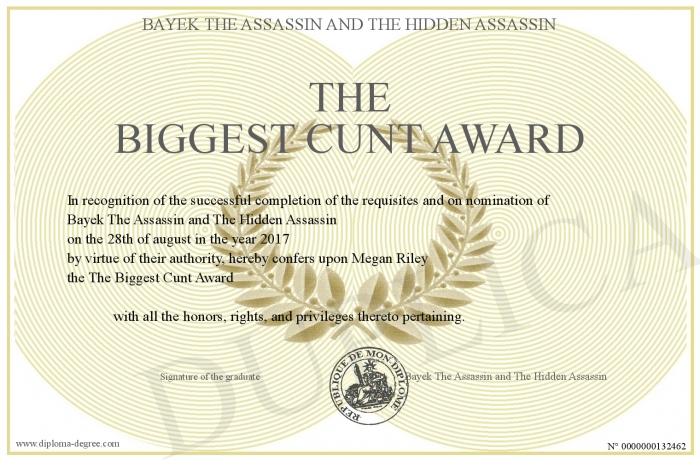 Certificate-degree can have your The Biggest Cunt Award