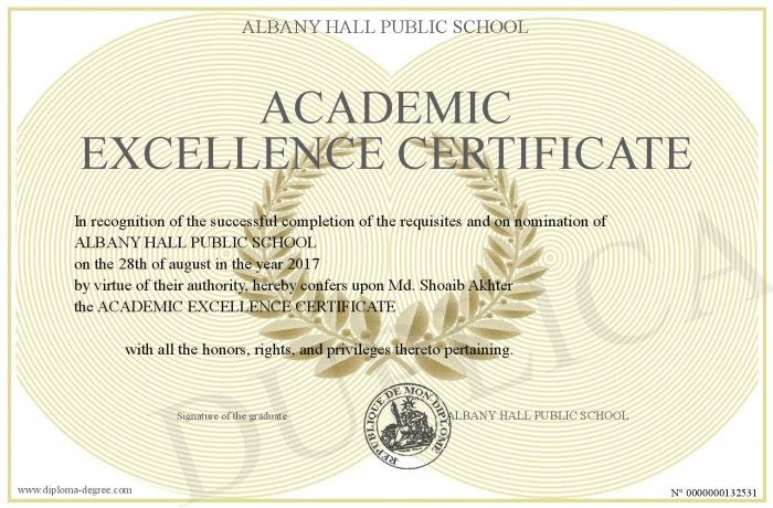 Certificate-degree can have your ACADEMIC EXCELLENCE CERTIFICATE