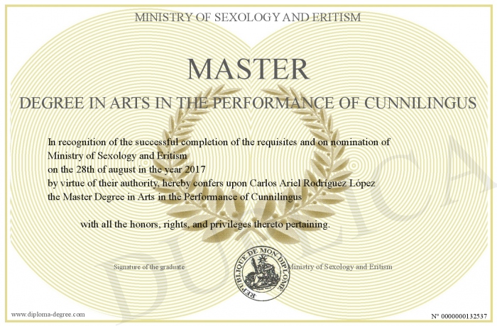 Certificate-degree can have your Master Degree in Arts in the Performance of Cunnilingus