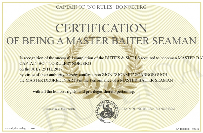 Certificate-degree can have your Certification of being a MASTER BAITER SEAMAN