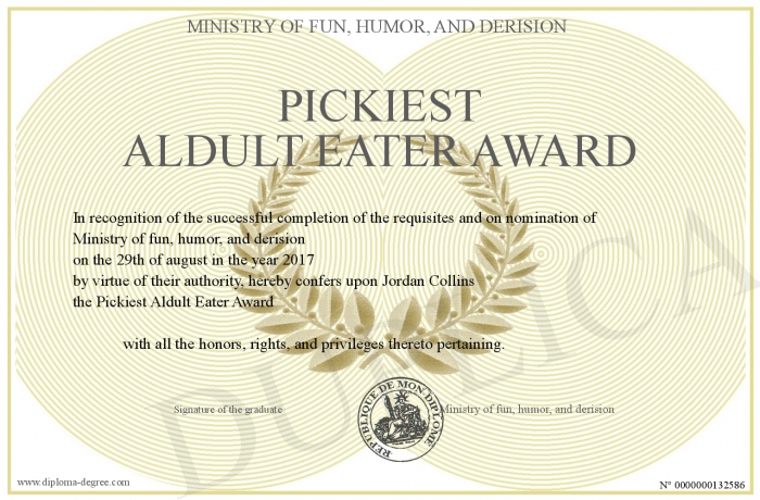 Certificate-degree can have your Pickiest Aldult Eater Award