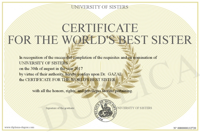 Certificate-degree can have your CERTIFICATE FOR THE WORLD'S BEST SISTER