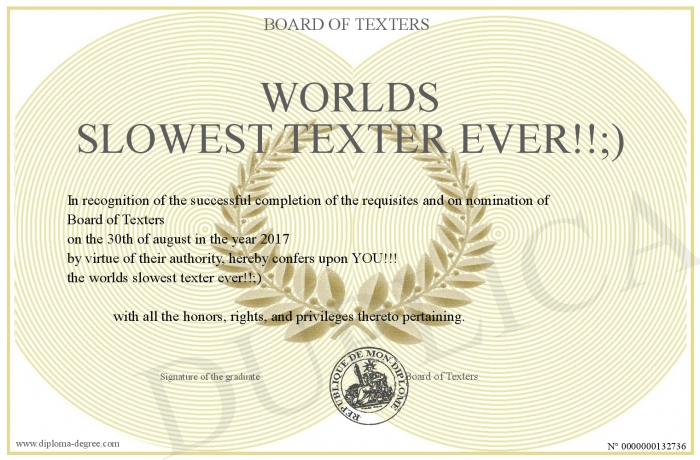 Certificate-degree can have your worlds slowest texter ever!!;)