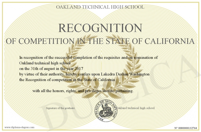 Certificate-degree can have your Recognition of competition in the State of California