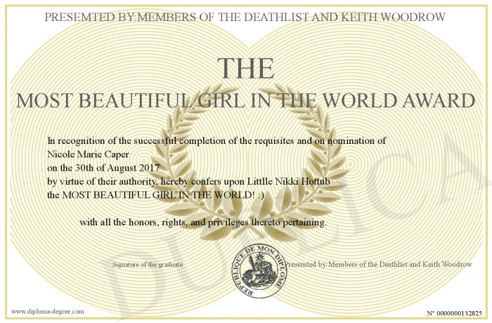 Certificate-degree can have your The Most Beautiful Girl in the World Award