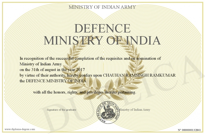 Certificate-degree can have your DEFENCE MINISTRY OF INDIA