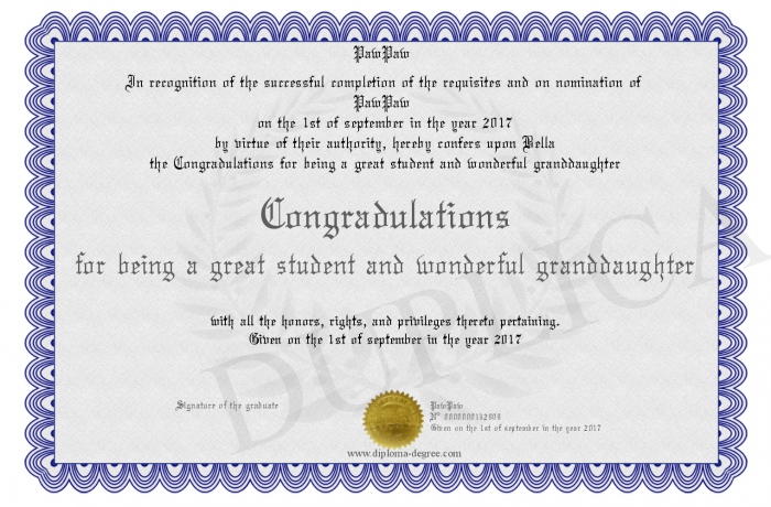 Certificate-degree can have your Congradulations for being a great student and wonderful granddaughter
