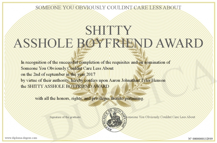Certificate-degree can have your SHITTY ASSHOLE BOYFRIEND AWARD