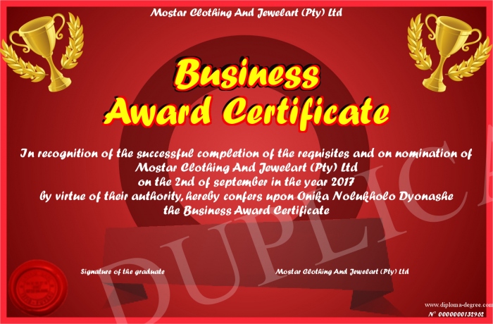 delivered to his owner by Mostar Clothing And Jewelart (Pty) Ltd !