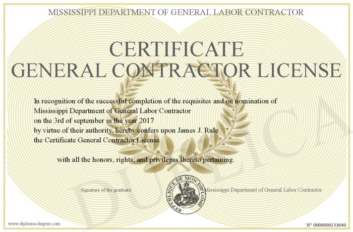 Certificate-degree can have your Certificate General Contractor License