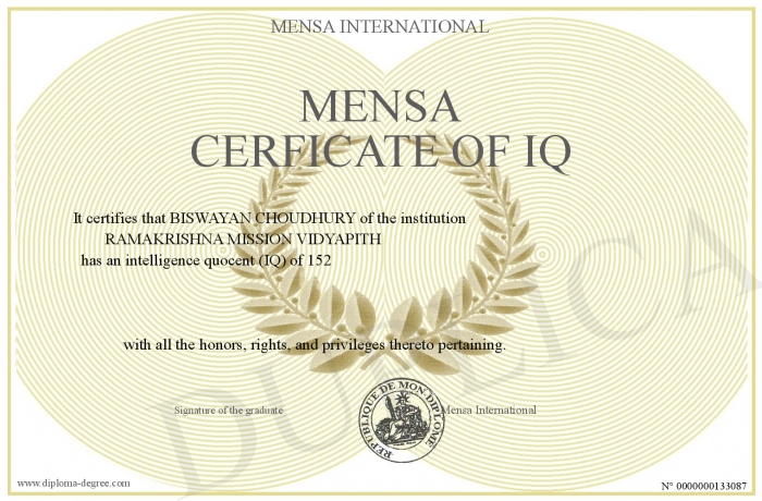 Certificate-degree can have your MENSA CERFICATE OF IQ