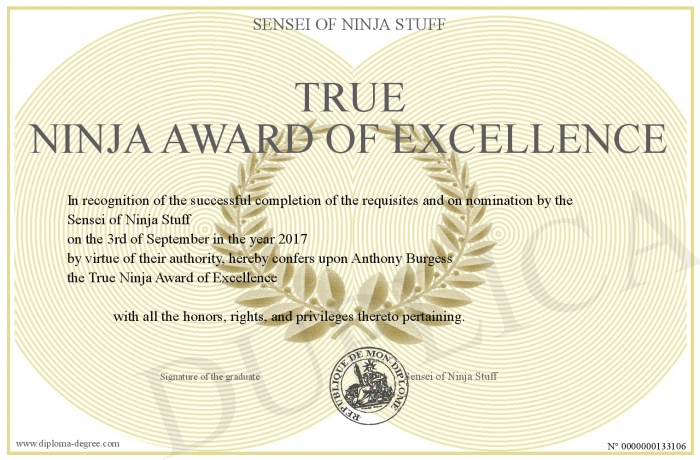 Certificate-degree can have your True Ninja Award of Excellence