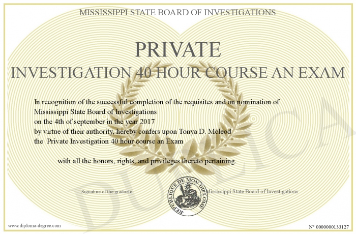 Certificate-degree can have your Private Investigation 40 hour course an Exam