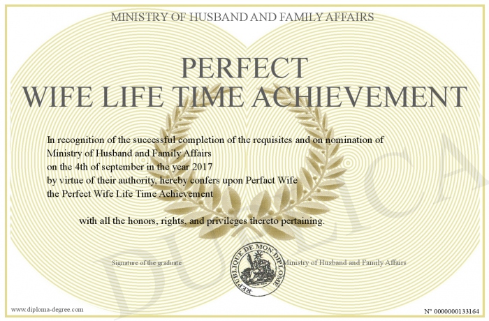 Certificate-degree can have your Perfect Wife Life Time Achievement