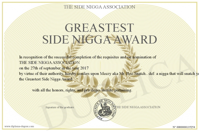 delivered to his owner by THE SIDE NIGGA ASSOCIATION !